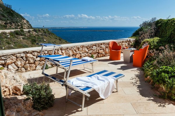 Seaside Hotel in Favignana, for a dreamy holiday in the heart of the Mediterranean Sea. A promontory which faces the marine protected area “Isole Egadi”, the largest in Europe. Apartments and rooms in residence for couples and families