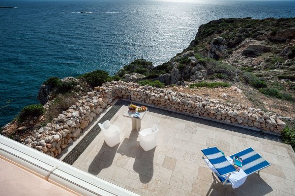 Our guests can enjoy outdoor spaces, panoramic corners and terraces, suggestive paths such as that which leads to the sea and our private cove, equipped of platforms where you can sunbathe. There is also a stepladder which facilitates the access to the sea.